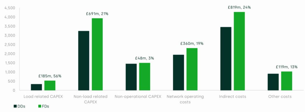 21 For simplicity, here and in the remainder of the cost assessment sections, we compare Ofgem’s FDs with the original DDs publication, without considering subsequent DDs corrections.