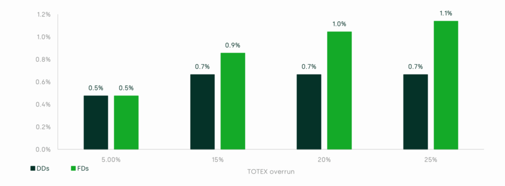 Figure 4 Impact of TOTEX overrun on RoRE under RIIO-ET3 DDs and RIIO-ET3 FDs TIM