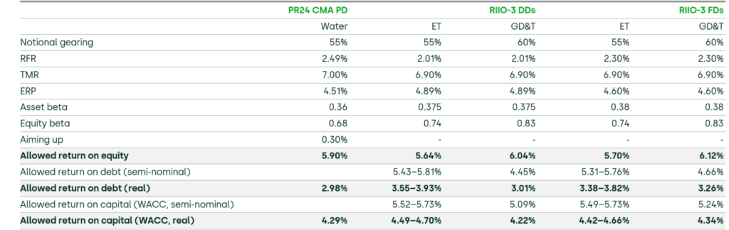 In the FDs, the allowed return on equity (CPIH-real, post-tax) is 5.70% for ET and 6.12% for GD and GT.